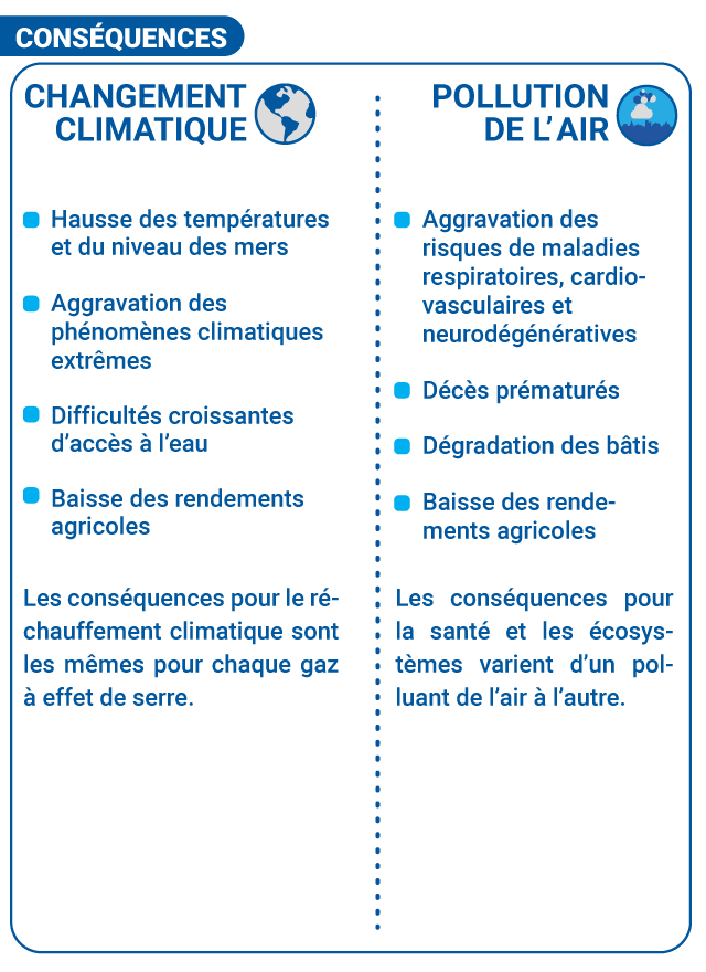Changement climatique et pollution de l'air se combinent et se renforcent.